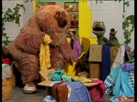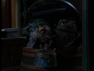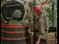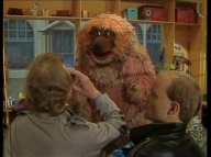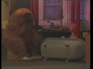 Früh am Morgen findet Samson eine Badewanne in der Sesamstraße. Zusammen mit Tiffy und Rumpel überlegt er, was das soll. |