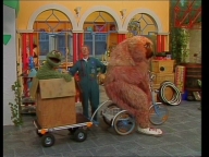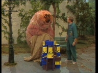 Ein Pantomime kommt in die Sesamstraße und lässt mit Samson einen unsichtbaren Drachen steigen. |