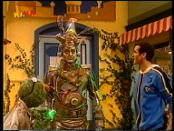 Rumpel hat einen Roboter gebaut. Leider ist dabei etwas schief gelaufen, denn der Roboter ist zu allen Leuten sehr nett und hilfsbereit. |