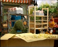 Ein Regal in Nils' Laden ist kaputt. Doch zum Glück kommt ein Vertreter-Hase und will ihm ein neues verkaufen. Rumpel meint, dass er aber ein besseres bauen kann. Der Stabilitätstest soll es zeigen. |