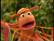 Finchen lernt eine Spinne kennen, die auf komische Art zeigt, wie ein Spinnennetz gemacht wird.
