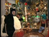 Pepe verwandelt sich heute versehentlich in ein Stinktier. Rumpel und Feli wundern sich darüber. |