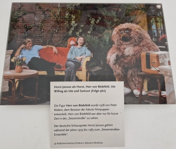 Schautafeln zur Figur Tiffy und das Plonsters-Set aus der Ausstellung zum 50. Geburtstag der Sesamstraße des Museums für Kunst und Gewerbe Hamburg aus dem Jahr 2023. Fotos von damals findet ihr unter dem Menüpunkt Ausstellungen. |